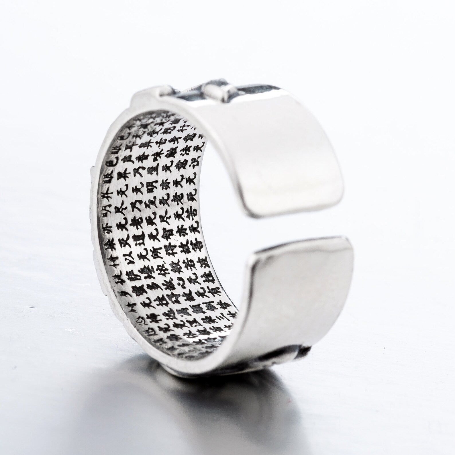 The Heart Sutra is one of the most profound and widely known Buddhist scriptures, symbolizing inner peace, wisdom, and spiritual awakening. Engraved inside the band, this ancient text brings a deep sense of mindfulness and protectionto the wearer. Perfect for those who value meaningful jewelry, this ring connects beauty with powerful spiritual symbolism, making it an ideal gift for meditation lovers, yoga practitioners, or anyone seeking clarity and balance in life.