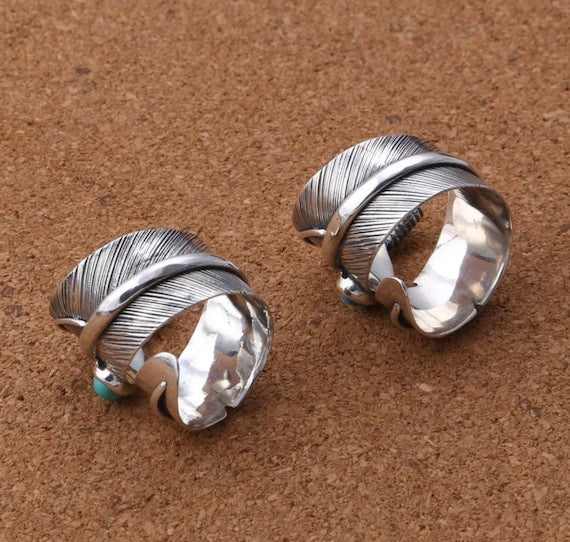 Celebrate the beauty of Native American craftsmanship with this handcrafted Turquoise Feather Ring, made from genuine sterling silver and natural turquoise gemstone.