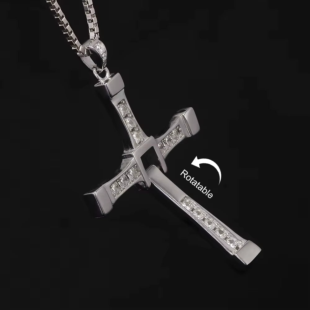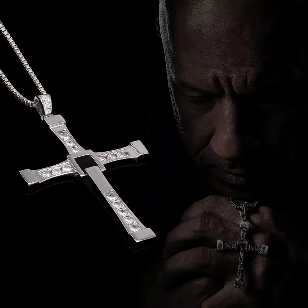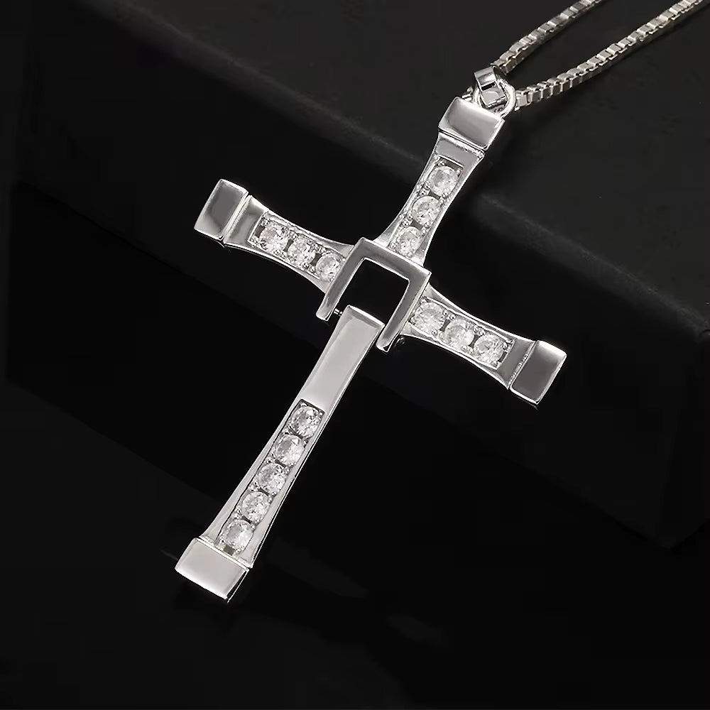 Inspired by one of the most iconic symbols in action-film history, this Dominic Toretto Cross Necklace is a powerful statement of loyalty, strength, and identity. Crafted in solid 925 sterling silver, this bold crucifix pendant features clean geometric edges, hand-set cubic zirconia stones, and a polished finish that reflects light from every angle.